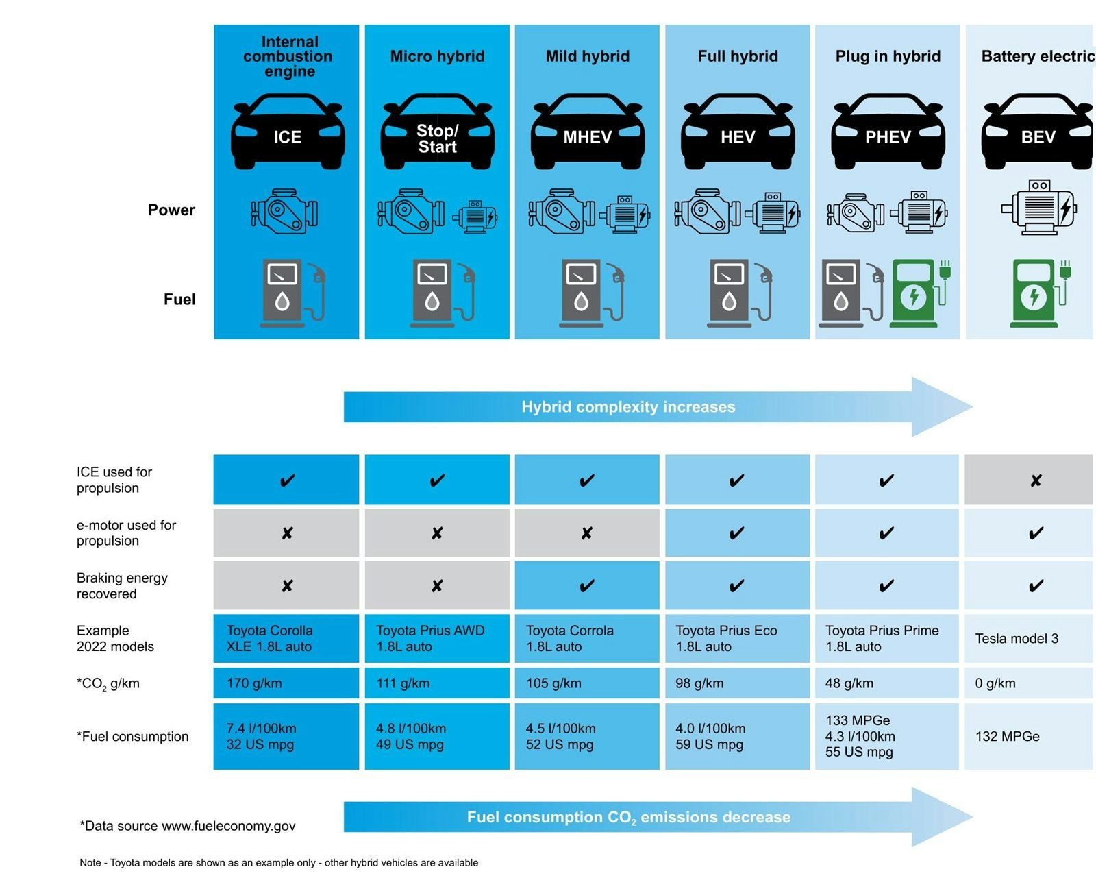Before looking at the extent to which electrification is penetrating the passenger car vehicle market, it is important to understand what the terms widely used in the industry by various OEMs mean, since not all vehicles carrying a hybrid logo have the same propulsion systems driving the wheels. The first graphic gives a high level overview of the differences between hybrid architectures from start/ stop, mild hybrids (MHV) and full hybrids (HEV) to plug-in hybrids (PHEV) and full battery electric (BEV).