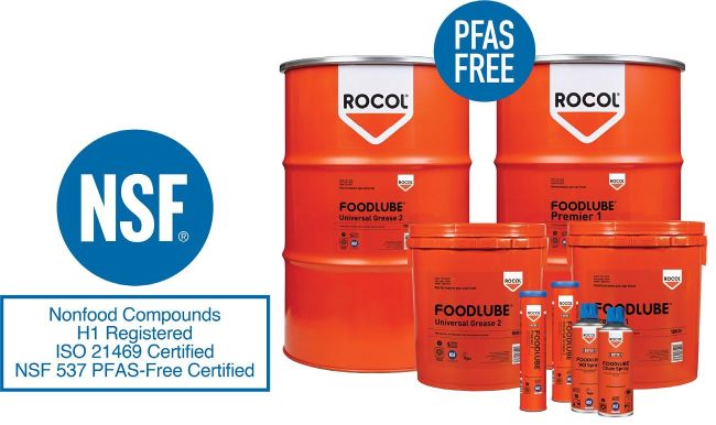 ROCOL, a manufacturer of industrial lubricants, has announced it has received the National Sanitation Foundation’s (NSF) new Per- and Polyfluoroalkyl Substances (PFAS) free certification for four products in its FOODLUBE range. NSF approved ROCOL’s food-grade lubricant products with its Sustainability Assessment for Water Treatment Chemical Products ANSI/NSF 537 certification, which provides criteria for assessing the environmental and human health impacts of water treatment chemical products, including lubricants or additives used in water-intensive operations following extensive testing. The accreditation, which can only be issued by the NSF, was launched earlier this year (March 2025) and is the first of its kind, marking a significant milestone in food safety and environmental responsibility.