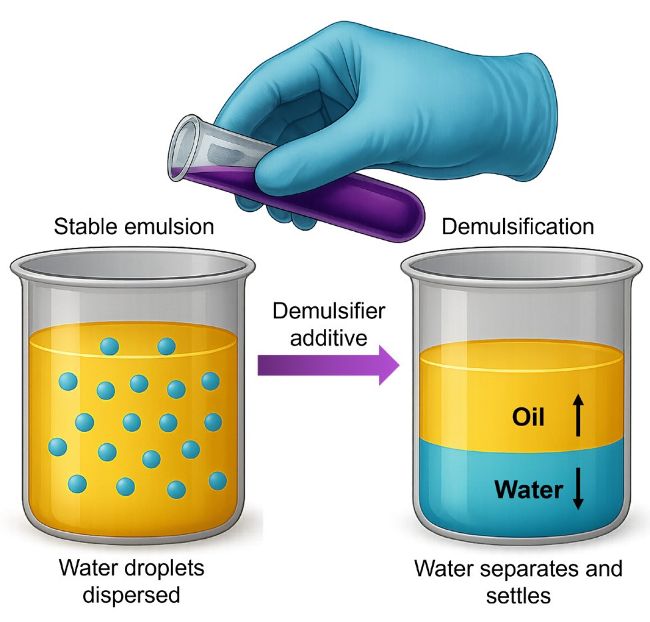 Many oils separate well enough from water on their own, but some base oils and additives are prone to forming a stable emulsion when water is present, and, as such, require the addition of a demulsifier additive.